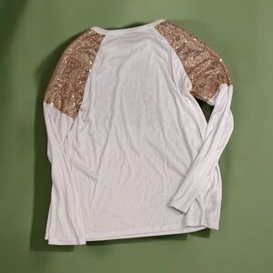 Features: Sequined Christmas tree design, long sleeves, and a crew-neck collar