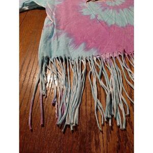Good Used Condition Women's Size XL Luxe Apparel Inc. Short Sleeve Cotton Fringe Pigeon Forge Great Smoky Mtns, TN Blue, Purple Tie-Dye with Pink, Black, and White Cotton Tee T-Shirt Top