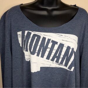 XL MONTANA BLUE SLATE GREY WHITE GRAPHIC TOP LONG SLEEVE WOMENS ROUND NECKLINE