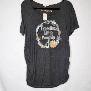 XL Maternity Expecting a Little Pumpkin Tee Fall Announcement Photo Halloween short sleeve shirred side t shirt Gray. NWT Maurices. Measurements approximately shoulder to hem 29" under arm to under arm 22"