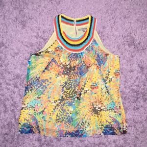 XL NY Collection Womens Rainbow Knit Confetti Print Crochet Neck Tank Top Blouse