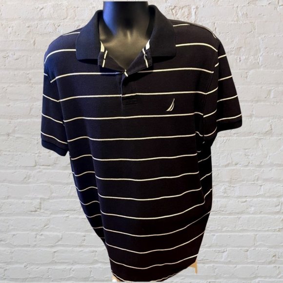 Black and White striped Nautica Performance Deck Shirt - Classic Fit