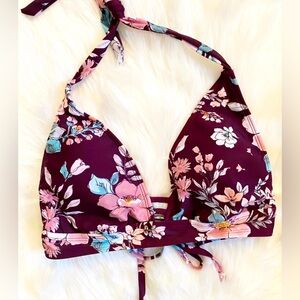 •XL• New Target Kona Sol Burgundy Purple Floral Halter Tie Swim Bikini Top