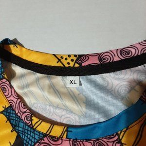 XL Nightmare before Christmas shirt All over print front and back bright colors soft shiny material nice quality, comfy sharp colors and many characters with Jack and Sally featured.
