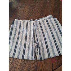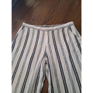 Women's Size XL Old Navy Black and Off White Rear Elastic Waist Linen Flare Wide Leg Capri Casual Pants with Pockets
