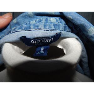 XL Old Navy Polka Dot Denim Button Down Long Sleeve Top
