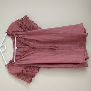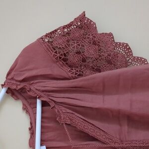 XL Old Navy Top Crochet Sleeve Tie Neck Solid Color Boho Bohemian