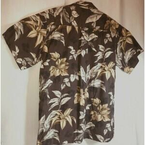 Palmwave Mens Hawaiian Button Front Shirt XL Brown Palm Leaves Pineapple Cotton
