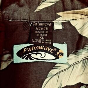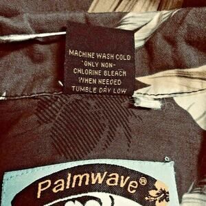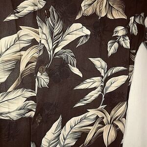 XL Palmwave Mens Hawaiian Button Front Shirt Brown Palm Leaves Pineapple Cotton