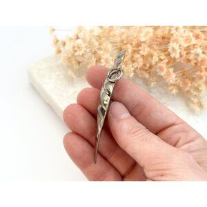 Gorgeous silver toned parrot figural pendant. The pendant is rather large but hollow so it's comfortable for all day wear. Handmade piece, I polished it gently myself. Silver toned and not sterling but the craftsmanship is fantastic despite that, doesn't have any tarnish and is really pretty. Wonderful gift idea too. Would look best with a silver toned chain.