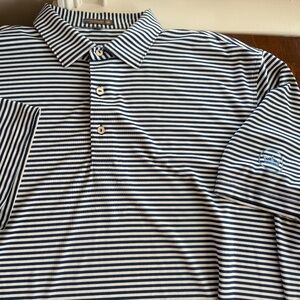 XL Peter Millar navy and white striped with the crown logo on the sleeve. Looks like brand new. Classic color combo.