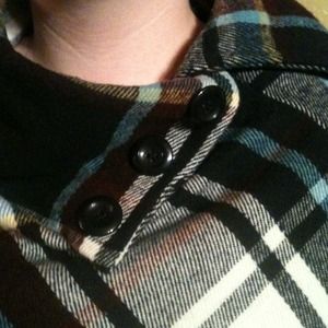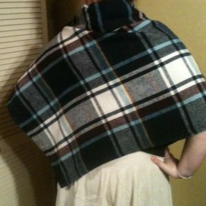 Grab your boots .. Throw on this shawl and go on your way .. Easy fashion .. Button accent collar .. Blue-white-yellow-red-teal.. 90%poly 10% wool outer . 100% poly lining .. Not worn .. Lost tags !