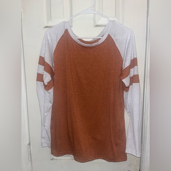 Never worn, ordered from somewhere online (I have no idea no tag). XL orange and white raglan tee.