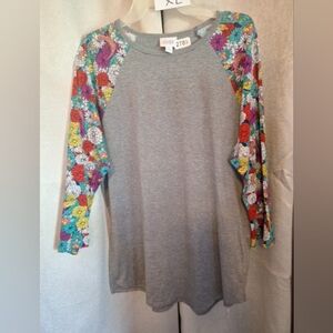 NWOT, LuLaRoe XL Randy baseball shirt. beautiful floral sleeves.
