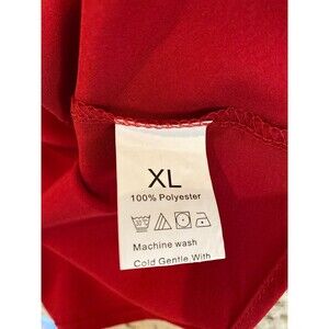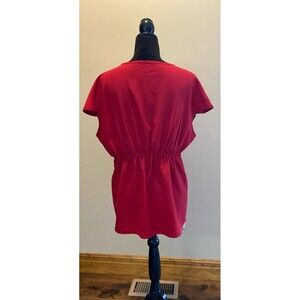 XL Red Blouse Cap Sleeves Faux Wrap Top Asymmetrical Hem V Neck Elastic Waist