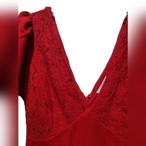 XL Red Lace V Neck Tie String Wide Leg Romper