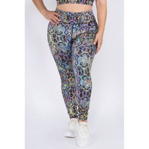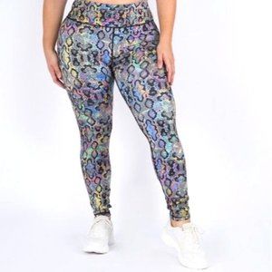 XL Size Womens Active Iridescent Snakeskin Print Workout Leggings
