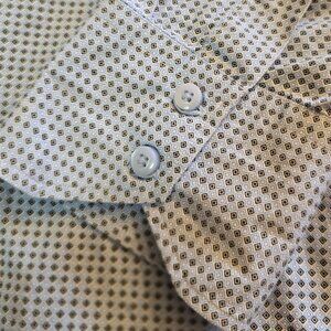 Blue Dress shirt with very small black geometric design by THOMAS DEAN Excellent condition.