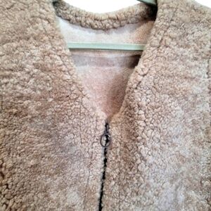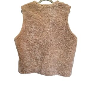XL Tan Faux Shearling Zip-Up Vest with Front Pockets. Missing Garment Label. Size based on measurements.