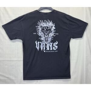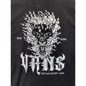 The XL Vans Graphic T-Shirt in Vintage Black is a stylish and authentic designer piece perfect for any man's wardrobe. Featuring the iconic Vans brand logo and established in 1966, this size XL shirt is a timeless classic that showcases a touch of retro charm. The black color adds a sleek and versatile element to the overall design, making it a must-have for those who appreciate quality and vintage-inspired fashion.