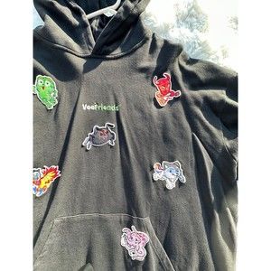 XL VeeFriends VeeCon 2022 EXCLUSIVE Hoodie RARE blk embroidered patch sweatshirt. 15 V2 Characters (all also found in the VeeFriends Compete and Collect card game) sewn onto this substantial unisex hoodie. One of only 200 color black. Exclusively sold (sold out with crushing demand and drama) at the first ever VeeCon (by Gary Vaynerchuk), held at USBank Stadium in Minneapolis, 2022.