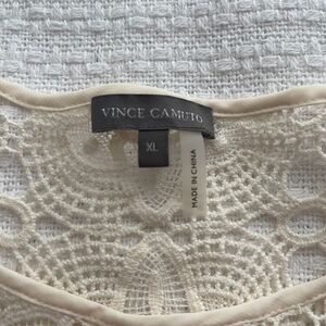 XL Vince Camuto cream lace top. Shoulder snaps to keep a cami or bra in place. This is entirely see-through. 100% cotton. This is in excellent used condition with no stains, rips, tears, or pilling. Measurements in photos.