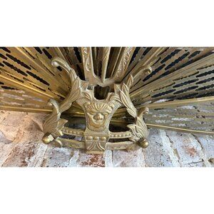 XL Vintage Art Deco Fireplace Screen Brass Ornate Peacock Folding Fan Rare 47" W