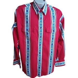 XL Vintage Mens Western Shirt Wrangler Geometric Aztec Mexican Cowboy 1990's