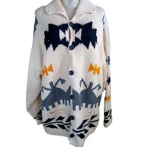 XL Vintage Women's Sweater Peru Wool Knit Cardigan Jacket Southwestern Coleccion