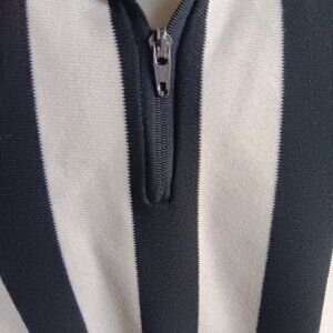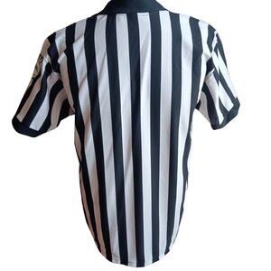 Step into the nostalgic realm of basketball's yesteryears with this vintage W.H.S.A.A. referee shirt. Adorned with classic black and white vertical stripes, the shirt features a distinctive front zipper and a chest pocket, encapsulating the quintessential style of vintage referees. The emblem of authority and tradition, it serves as a testament to the storied history of the sport.