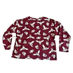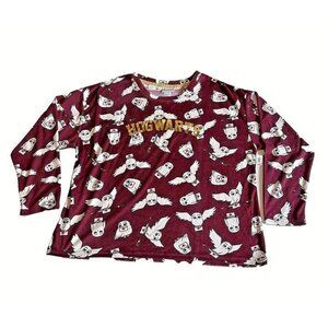 XL Woman Harry Potter Hogwarts Hedwig Letters Soft Sleepwear Maroon PJ Top