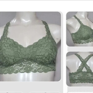 Xhilaration Lace Crossback Wire Free Bra Bralette Pioneer Sage Green NWT