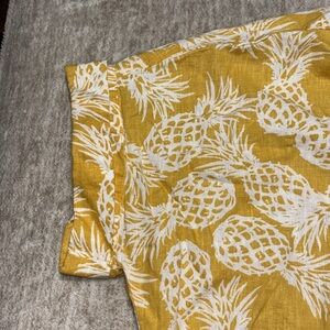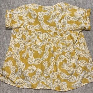 XL XXL pineapple Linen Top short cuffed sleeve pleated back flowy yellow white