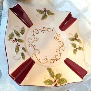 XL Yankee Candle Ceramic Candle Shade and Plate Set Holly Burgundy Y1