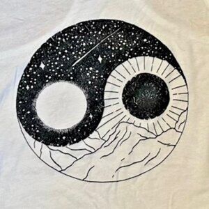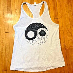 XL Yin Yang, Sun and Moon, Racerback Screenprint by ind. artist NWOT. LTD Ed.
