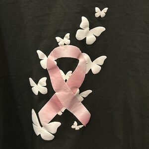 XL‎ black T-shirt with butterflies and a pink ribbon.🎀