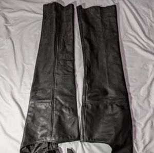 XL motorcycle chaps. Worn once great condition. Can be worn by women or men the way the zippers go makes them men's. Lightly lined.