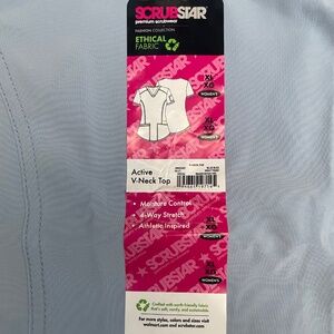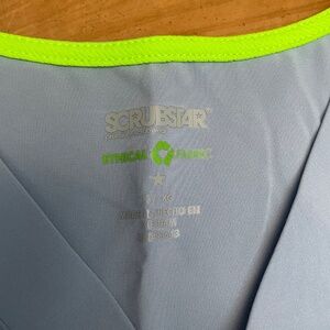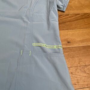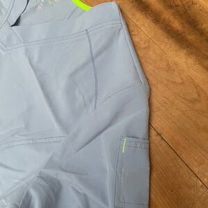 Brand new 4 way stretch scrub top. V neck. Extra large. Bluish grey color with neon green accents and tons of pockets.