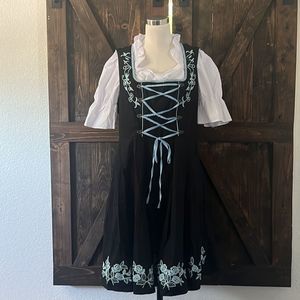 XL16-18 Trachten,Oktoberfest,Germanfest Dirndl Dress,3-pc,Blue Roses embroidered