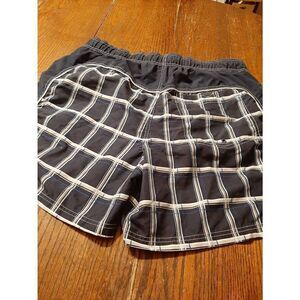 Good Used Condition Men's Size XL 40/42 Faded Glory Blue, Grey, and White Swimming Trunks Shorts Swimwear- Lined, Elastic Drawstring Waist, With Pockets