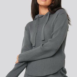 ✨XLE the Label, Dark Grey Gray Greg Rib Knitted Hoodie Size Small (S) Ribbed ✨