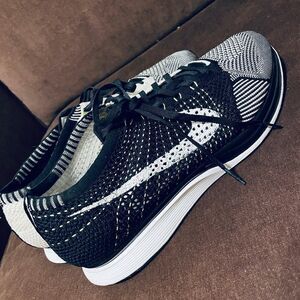 XLNT NIKE FLYKNIT RACER BLACK-WHITE-WHITE-VOLT SZ 13 US MEN 526628-011 47.5 EUR