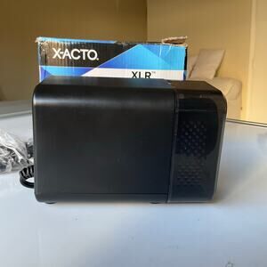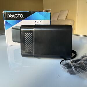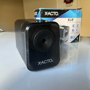X-ACTO XLR Office Electric Pencil Sharpener, AC-Powered, 3" x 5.5" x 4", Charcoal Black (1818X) Stylish and powerful, the XLR Electric Pencil Sharpener combines smart sharpening technology with modern construction for dependable home and office use. This classic box sharpener is designed for daily use and utilizes a hardened helical cutter to efficiently sharpen pencils to fine point tips. A powerful yet quiet electric motor delivers reliable sharpening power, while an Auto-Reset feature helps prevent overheating and damage. PencilSaver technology eliminates oversharpening to extend pencil life and minimize waste. The XLR Electric Pencil Sharpener is designed to be a sleek and reliable addition to your office space.
