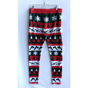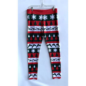 XLUSION Gun Print Ugly Christmas Leggings Holiday Pants Stretch Size XL