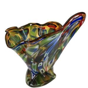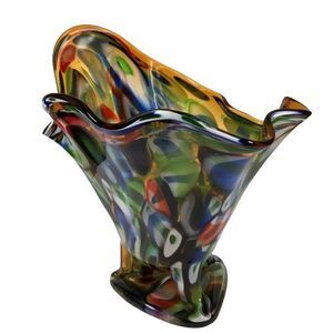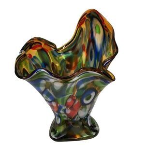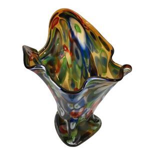 Murano Art Glass Handkerchief Scarf Vase Centerpiece Millefiori Confetti Multicolor.