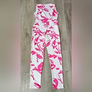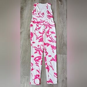 XLarge Sleeveless Jumpsuit – Pink & White Abstract Print