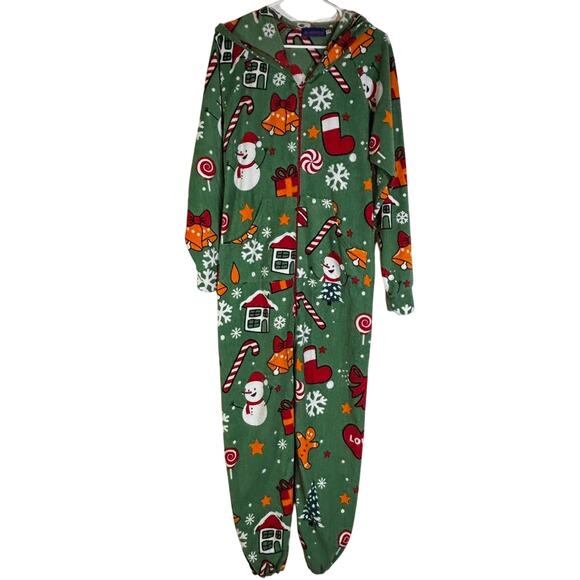 XMAS Coming Adult Size XS One Piece Pajamas Pockets Christmas Green