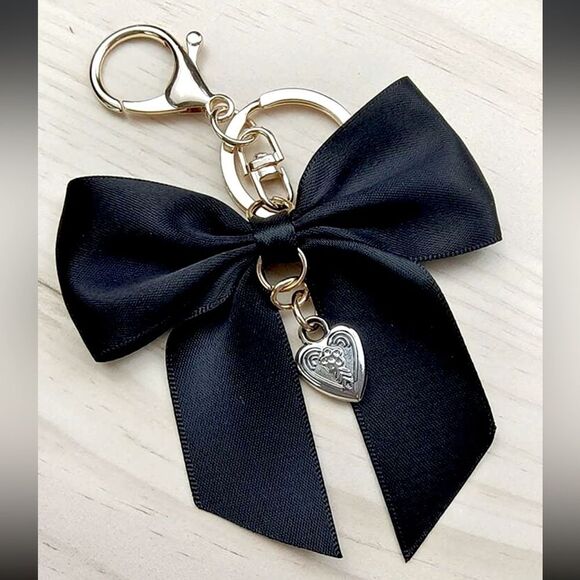 XMAS SALE Black Satin Bow Bag Charm Keychain