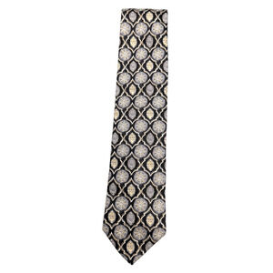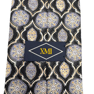 XMI 100% Silk Dress Tie Made in USA Black Geometric Pattern 58" 3.75"