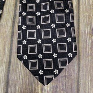 XMI 100% Silk Made in USA Geometric Daisy Print Black Neck Tie